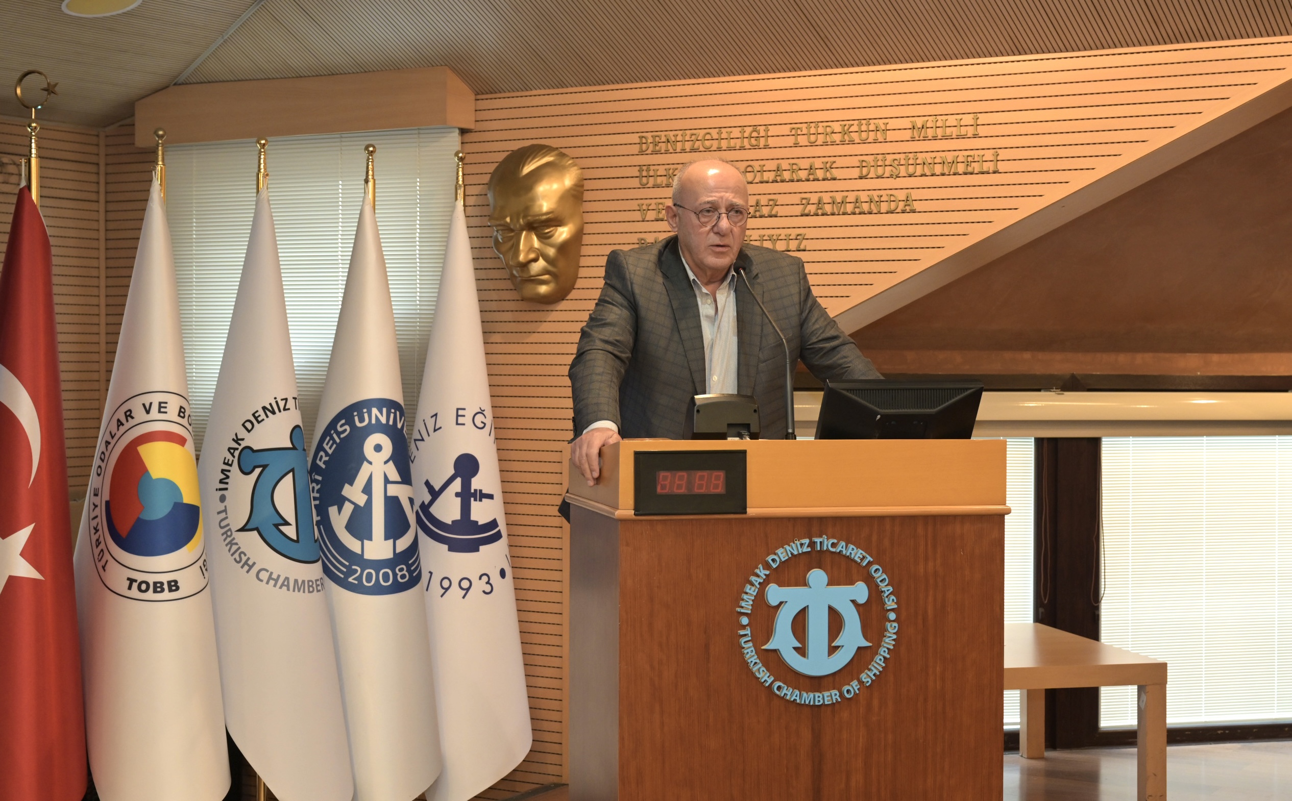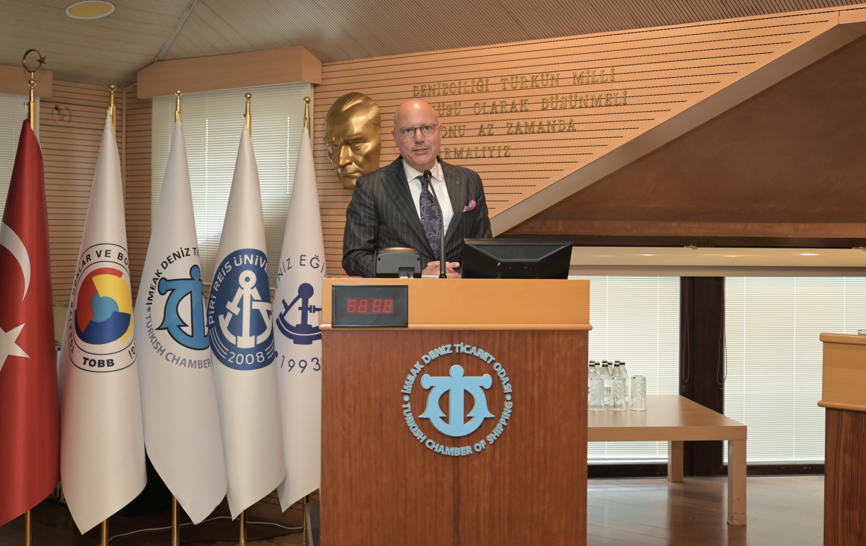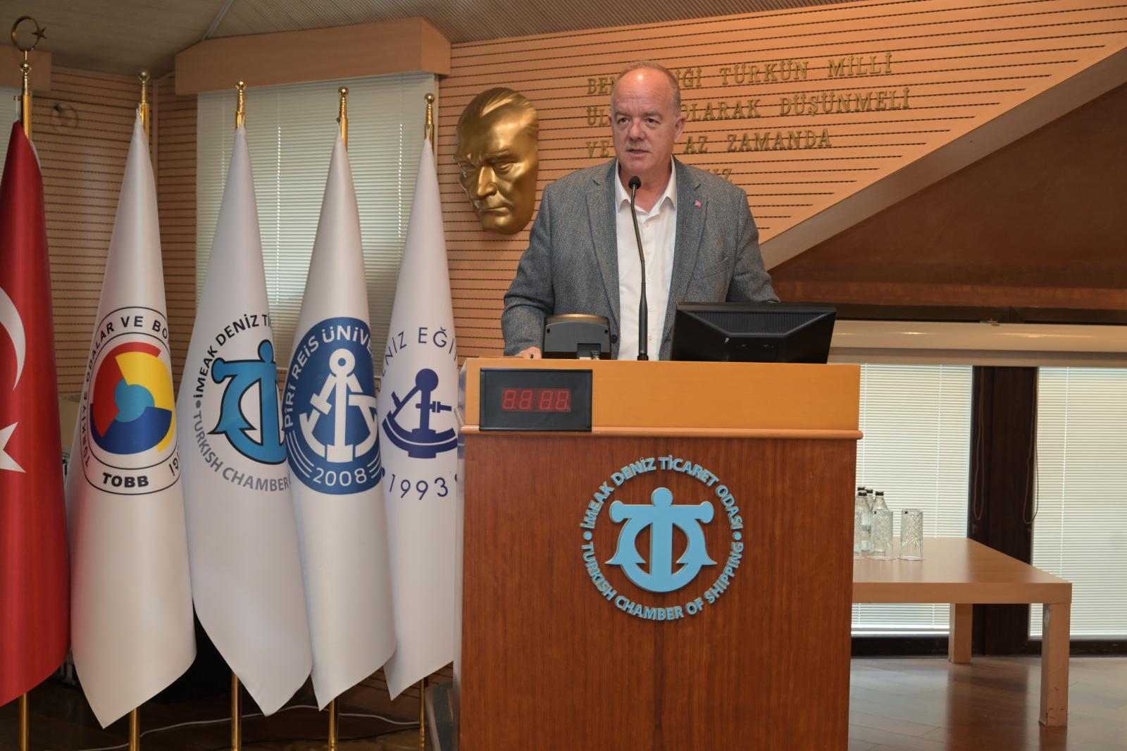 İMEAK Deniz Ticaret Odası Yönetim Kurulu Başkanı Tamer Kıran da yaptığı konuşmada, Türk denizcilik sektörü hakkında bilgi verdi, sektörü yakından ilgilendiren uluslararası gelişmeleri değerlendirdi.