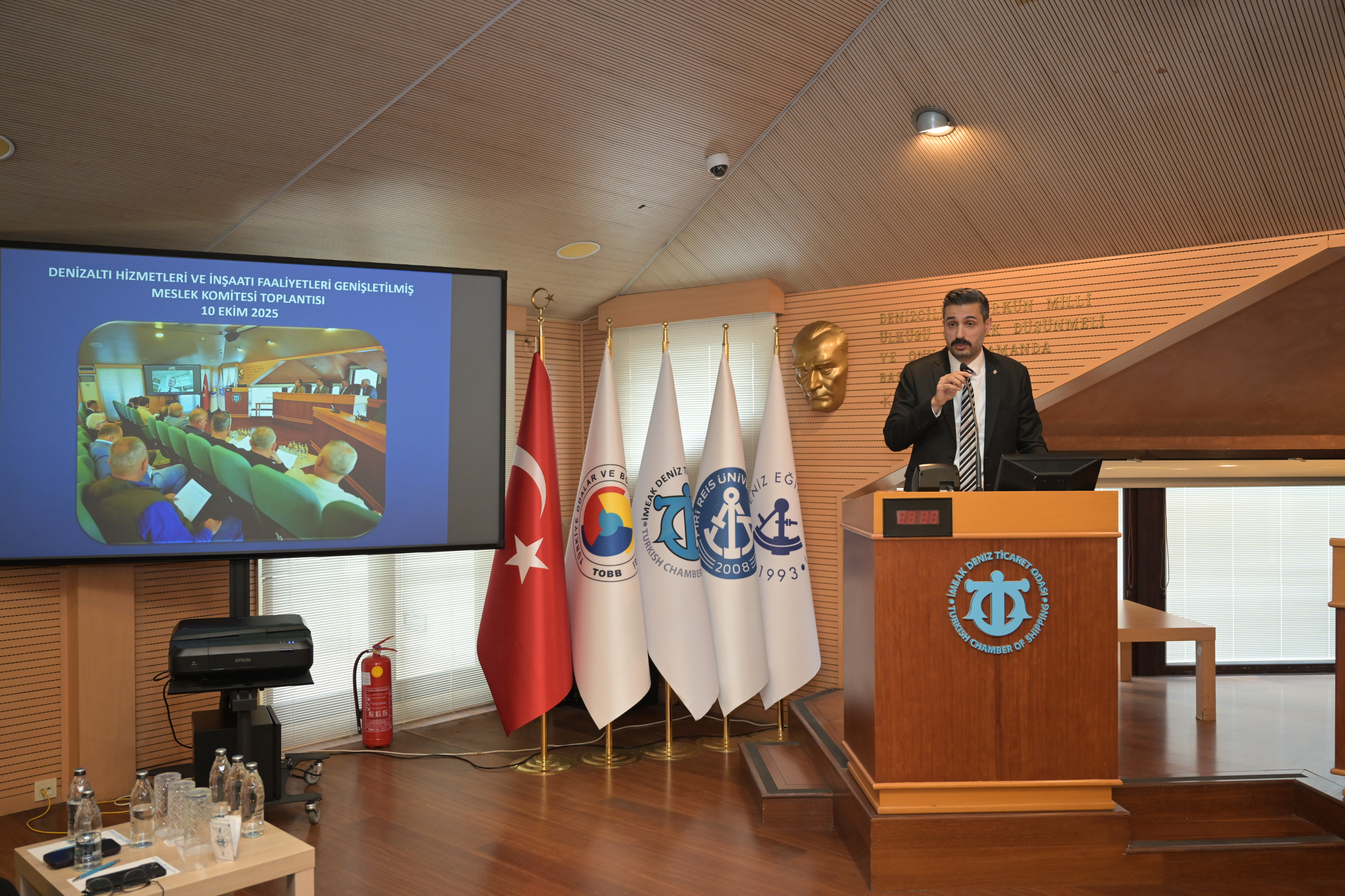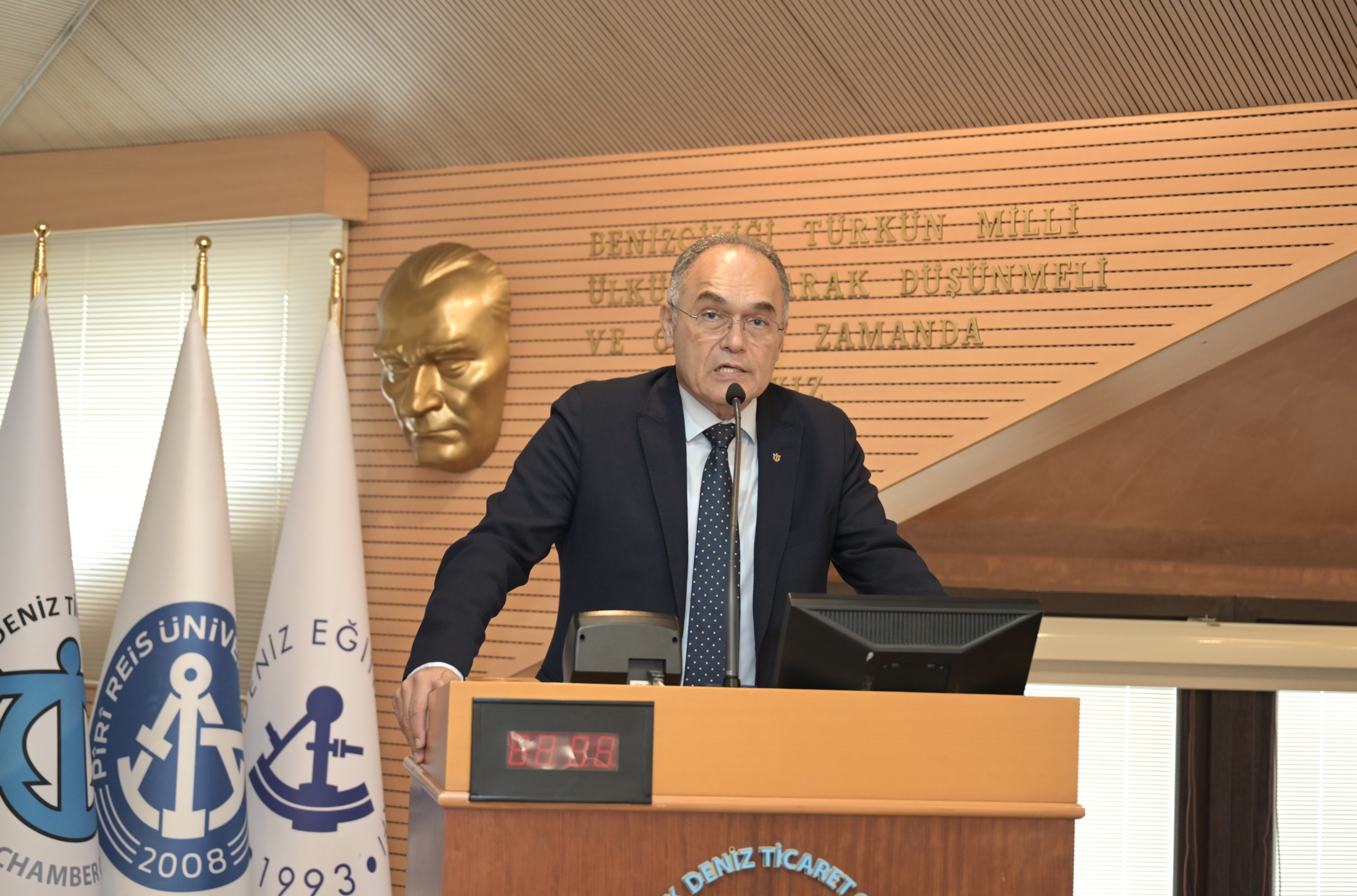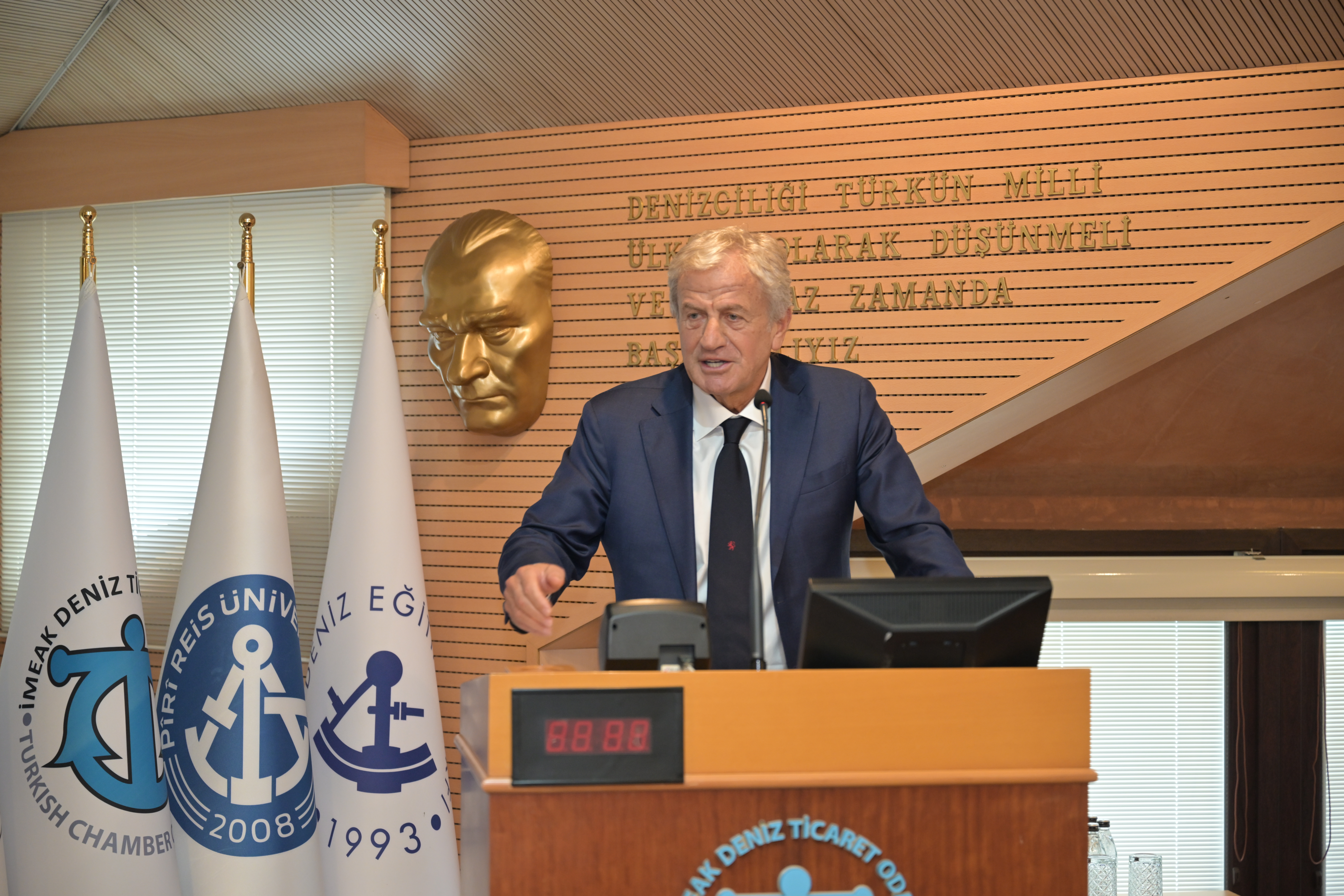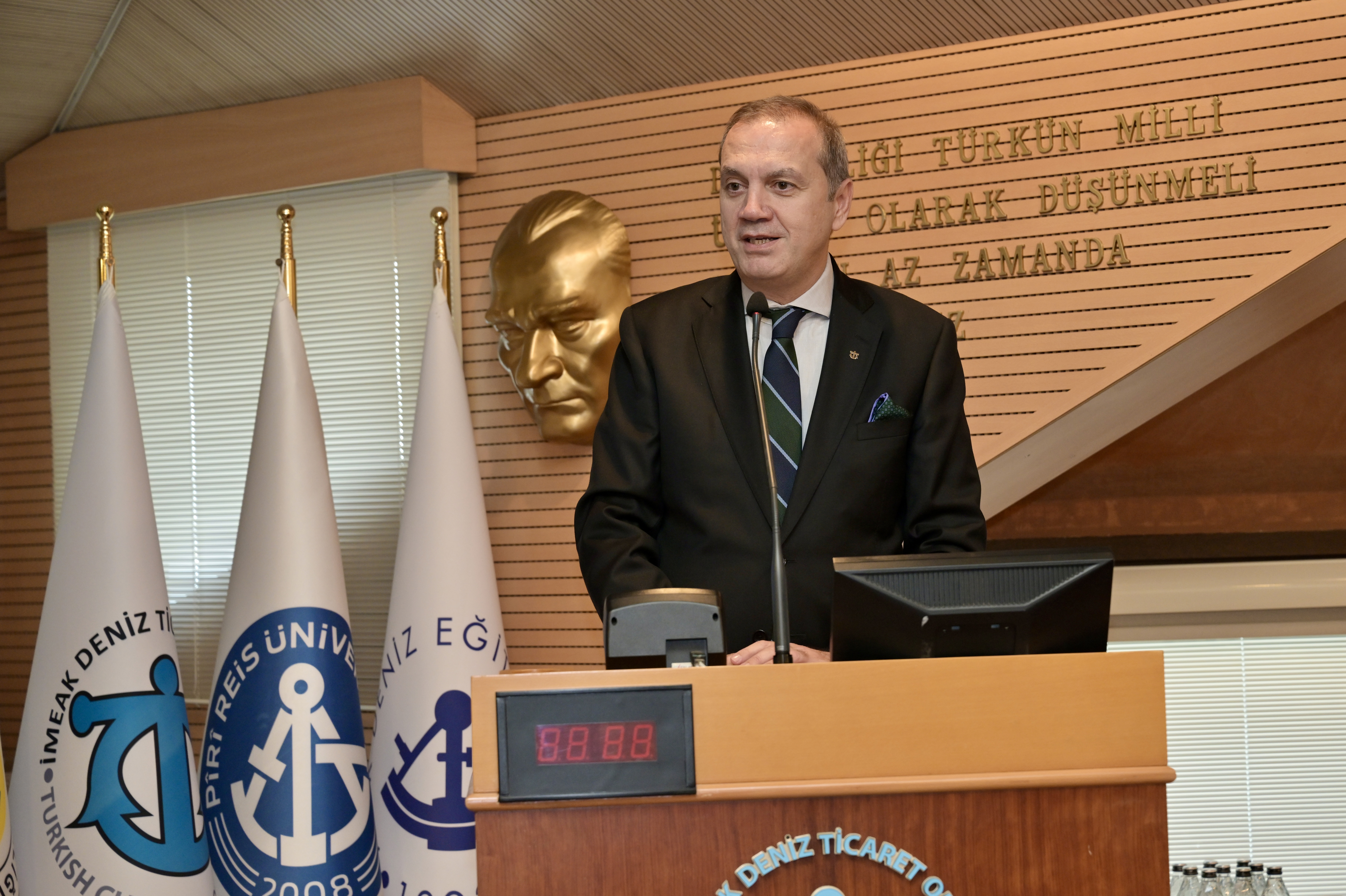 İMEAK Deniz Ticaret Odası Yönetim Kurulu Başkanı Tamer Kıran da yaptığı konuşmada, Türk denizcilik sektörü hakkında bilgi verdi, sektörü yakından ilgilendiren uluslararası gelişmeleri değerlendirdi.